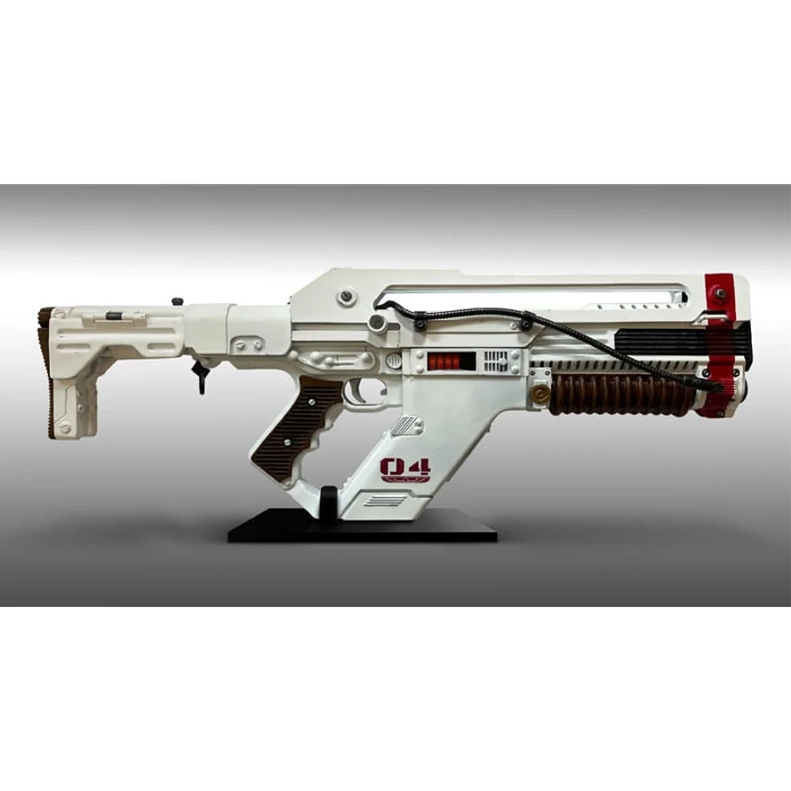 From the much anticipated new movie in the Alien Franchise, we are proud to present our Alien: Romulus 1:1 scale Pulse Rifle Prop Replica! Designated the F44AA, this amazing Prop continues the rich heritage of the original M41A Pulse rifle. This replica is created from 3D scans of the original Hero Prop used extensively throughout the movie, for the ultimate in authenticity and realism to the original prop! Accurate to the smallest detail, everything is meticulously recreated, including the HUD (head up display) sighting system, and round counter on the side. This amazing Prop Replica is constructed of fiberglass and mixed media, with a table-top display base. A must for any Aliens collection and a strictly Limited Edition of just 750 pieces Worldwide. Limited to 750 pieces worldwide.