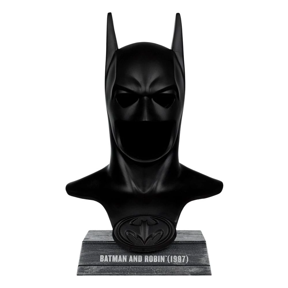 THE DARK KNIGHT™ battles his greatest threats yet: cold-hearted MR. FREEZE™, venomous POISON IVY™ and the unstoppable brute known only as BANE™. BATMAN™ finds himself at odds with his crimefighting comrade ROBIN™, no longer satisfied with his role as a sidekick. As MR. FREEZE™ threatens to unleash a new ice age upon the citizens of GOTHAM CITY™, the DYNAMIC DUO, now joined by the heroic newcomer BATGIRL™, must learn to work as a team before GOTHAM CITY is put on ice. - 1:3 SCALE COWL REPLICA based on BATMAN AND ROBIN - Stands approximately 7? tall - Includes display stand - Collect all McFarlane Toys DC Direct Replica Cowls