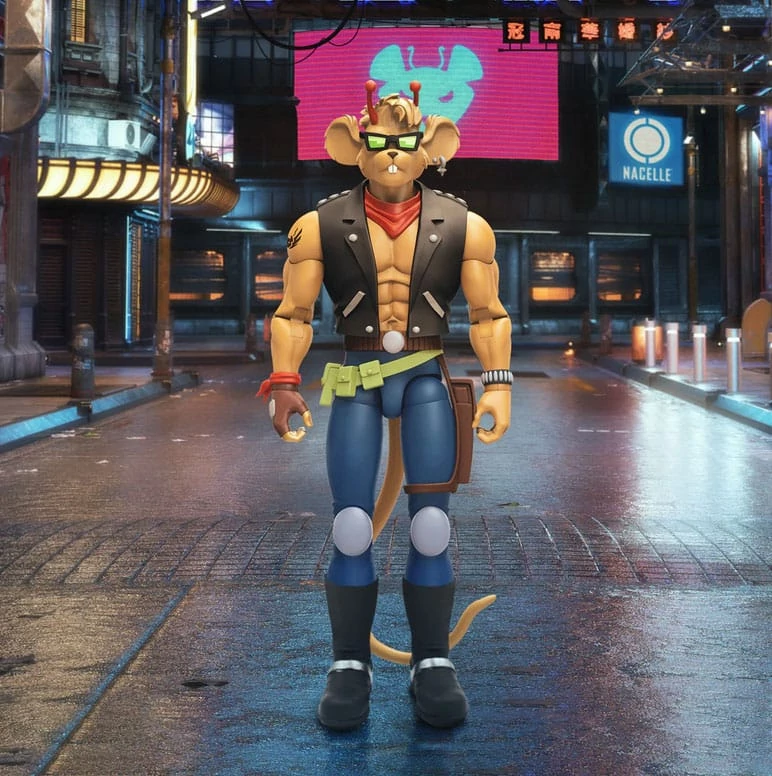Rev up your engines and get ready to ride with the fearless leader of the Biker Mice From Mars - Throttle! With his trusty sprocket launcher accessory, Throttle is ready to take on the evil forces of Limburger and lead his crew to victory. Standing at just over 7 inches tall, this fully articulated Throttle action figure is a must-have for any true fan of the classic animated series. So, whether you're reliving your childhood memories or discovering the Biker Mice for the first time, this Throttle action figure is sure to be a mind-blowing addition to your collection. Product Features: - 7.12-inch Scale (18.08cm) - 22 Points of Articulation - Masterfully Painted - Packaged in A Collector's Box Box Contents: - Throttle Action Figure - 2 Interchangeable Heads - One With A Helmet! - 2 Sets of Interchangeable Hands - Sprocket Launcher Accessory - 3 Sprockets - Blaster - Hotdog