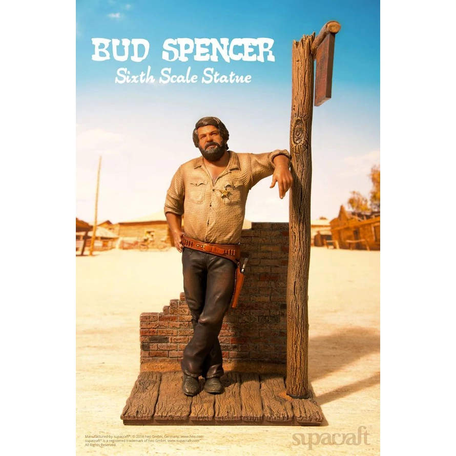 Olympic swimmer, composer, pilot, inventor and European cult cinema icon. While these are some (and not even all) steps in the incredible life and works of the great Bud Spencer, many of us simply see him as our childhood hero! Very few actors have a more dedicated cult following than the Italian screen legend. Fans and collectors are desperately waiting for many years now for some high-end Bud Spencer collectibles and the wait is finally over! supacraft® proudly presents the world's first officially licensed Bud Spencer 1/6 scale resin statue. It shows him in his early days of acting in several Spaghetti Western movies which brought so much fun to this genre. The statue is true to Bud's appearance in those days and bursting with details. The head sculpt features an incredible likeness of Bud Spencer and also his build, the relaxed pose and facial expression and the clothes he wears - all look like they were cut right out of the silver screen. Many small details, like the dusty look of his clothes, the sweat stain on his back, the dirt under his fingernails, his belt , the sheriff's star, his spurs and even the spot where his shirt is untucked, bring joy to any collector's heart. The removable gun fits perfectly inside the holster. The beautifully crafted diorama base gives everything the perfect final touch. We at supacraft® had the honour and privilege to work with Mr. Spencer directly to make this masterpiece happen! The Maestro himself approved the final prototype of this collectible in early 2016, before he sadly passed away later that year. We will always remember him as the kind, humble, larger than life person he was and we are happy to be able to honour his legacy with such a wonderful piece of art. The statue is limited to 1.500 pieces and will include a certificate of authenticity and a medal of authenticity, which is housed in a case with velour interior. Features: - 1/6-scale resin statue - Western-style diorama base - Limited edition of 1.500 pieces - Certificate and medal of authenticity - Full-color cardboard packaging with foam interior Product specifications: Height: 44 cm (height of figure without base: 32 cm) Length: 20 cm Width: 22 cm Weight: 3965 g