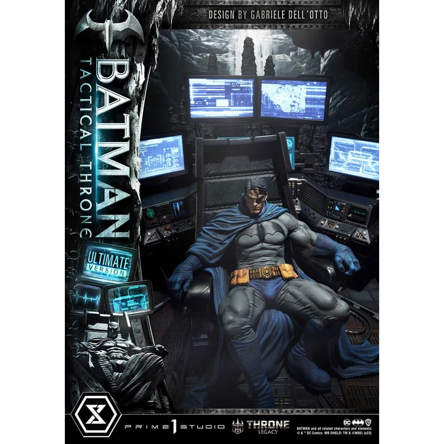 As you all know, Batman is a DC hero that is no stranger to Prime 1 Studio, but this statue of Batman is unlike any other that we have presented to you before. Based on a variant cover of Batman Vol 3 #111 drawn by Gabriele Dell'Otto, our artisans have pushed the boundaries of sculpting once again to capture Batman's essence in this truly breathtaking statue. Within the depths of the Batcave, Batman sits on his throne, ever so slightly slouched. He gazes out into the distance, deep in thought... Is he pondering about a mysterious incident or perhaps remembering a faint clue, becoming puzzled by its purpose? Is he reminiscing about his childhood and the very event that has led him onwards on his path of vengeance? One can be sure that he's constantly planning ahead, striving to devise the most tactical scheme possible. Let's take a closer look at this 18-inch-tall statue. Batman is here, wearing his classic costume of blue and grey. Every inch has been sculpted with the utmost attention to detail. From the fabric wrinkles to the signs of wear and tear from his crime-fighting over the years. Just look at the careful use of shading that has been applied to perfection. Both arms are resting on his armrests, and his cape is seen drooping down to the floor, partially covering his left leg. Stalagmites are found all around his throne, which helps evoke the atmosphere of the Batcave. The Ultimate Version is where we truly pushed ourselves to the limit to offer you something that's never been seen before. Behind Batman are not one, but four illuminated monitors, displaying various details including tracking systems that help our Caped Crusader in his pursuit of justice within Gotham City. With this version, two additional left arms are provided, allowing you to change the angle as well as the way his elbow lays on the armrest. An additional cape and an unmasked Bruce Wayne portrait are also included. This version takes this statue to the Next Level. The throne comes with a grandiose Batcave diorama that has been crafted to perfection. It enhances the view of the front of the base with the enormous stalagmites, bringing the overall piece to over 25 inches, but the real secret sits at the back of the diorama. Turning it around reveals the secret entrance to the Batcave with Batman standing next to the easily recognizable Batmobile. The Batcave has different shades of black and grey, with a hint of blue via the LED illumination. And at the top of it all, the iconic, large Bat-Insignia. This piece has been a true test for all of us at Prime 1 Studio and a beautiful piece to commemorate our 10th-year anniversary. And when you order this Ultimate Bonus version from our official store or any authorized distributor, you will receive an additional head part. This one is another masked variation of Batman, featuring him with a different facial expression. Whether you are a Batman fan or a superhero enthusiast, this is a statue that you do not want to miss out on. Pre-order the MMDC-65UTS Batman Tactical Throne Ultimate Bonus Version now and bring home a beautifully crafted centerpiece that will blow all the others away! Limited to 500 pcs! Product Specifications: - Size: 57 x 73 x 66 cm - Batcave-themed base with four illuminated monitors - Batcave-themed base Diorama (65 x 68 x 39 cm) - LED Illumination on monitors and base - 3 x Swappable left arm parts - 1 x Swappable cape part - 2 x Swappable head parts - 1 x Bonus Head