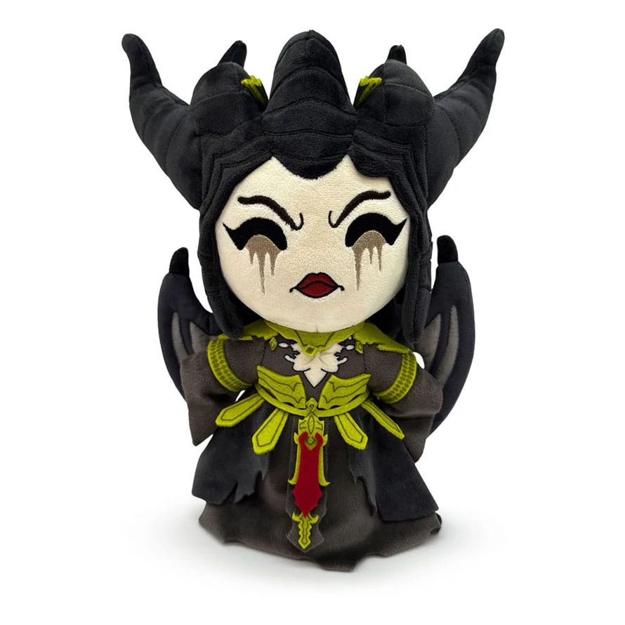 Hail the Daughter or Hatred's return to Youtooz for her plush debut! Standing at 9 inches tall with her arms outstretched and light markings running from her eyes down either side of her frowning red lips, thick black horns reach up from the top of her head and point down on both sides of her face. Wearing a flowing black cloak that's torn at the chest and is covered in elegant gold detailing, its long open sleeves hang from her wrists as sharp wings extend from her back above a spined tail. This plush is packed to the seams with 100% PP cotton and is made of the softest minky material with accents of felt, absolutely perfect for cuddling or ruling Sanctuary with! About Diablo IV: Diablo IV is an online action rpg game developed and published by Blizzard Entertainment and is the fourth installment in the Diablo series. Letting you create your own character and choose a specialized class, the game focuses on replayability with procedurally generated dungeons and the rarest loot drops you could grind for.