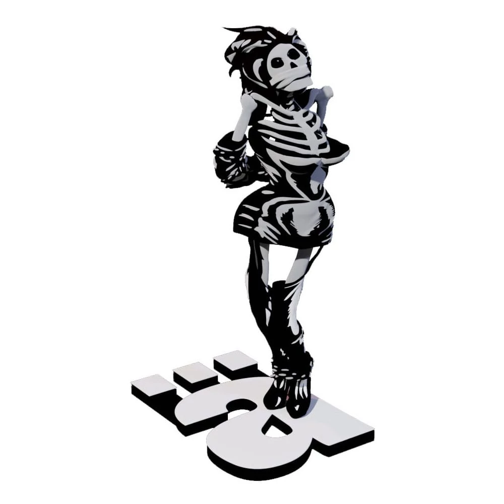 "Gwendoline" is the legendary mascot of the punk rock band "Die Ärzte". The artistically designed statue shows the skeleton version in 1/10 scale and is made of high-quality, durable resin. Richly detailed and elaborately designed from head to toe, this unique work of art impressively demonstrates what is now possible in modern sculpting. "Gwendoline" is the highlight of any collection and an absolute must-have for die-hard fans of Bela, Farin and Rod. Gwendoline" has been the band's mascot for 30 years - they even dedicated a song to the curvaceous fictional character. The female creature has its origins in drawings by bondage artist John Willie and his comic "The Adventures Of Sweet Gwendoline". 100% Made in Hamburg, plastic-free packaging (except for the cardboard adhesive).