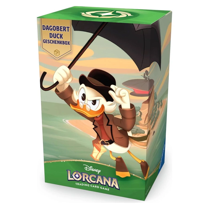 Contents: 5 Booster Packs 1 "Glimmer Foil" promo Card Dagobert Duck - S.H.U.S.H. Agent 1 Dagobert Duck storage box (holds up to 250 sleeved cards) 3 Punch-out card dividers Please note that we can only ship release items on time for the release date if the net value of your release order exceeds the valid postage allowance for your destination country.