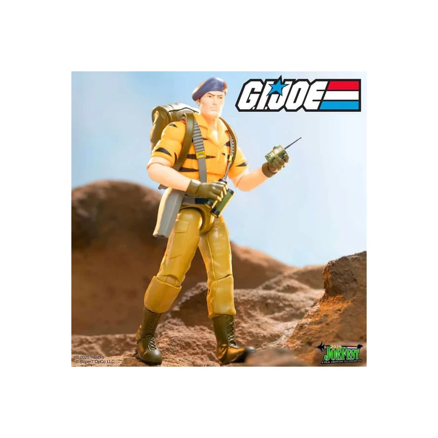 This movable action figure is part of the "GI Joe" series. It is approx. 18 cm tall and comes with other accessories in a window box.