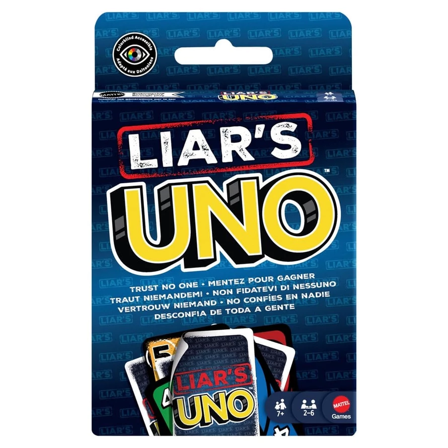 Fans of UNO will love this variation on the classic card game, where the biggest liars come out on top. A "liar card" is placed face down and the player announces what card it is. Is the player telling the truth or is it a blatant lie? If the statement is questioned and a lie is revealed, a card must be drawn. But if it was the truth, the person who questioned it must draw a card. So the rule is: don't give anything away, stay cool and never forget to shout "UNO" when you only have one card left! A great gift for card game fans aged 7 and up. Subject to changes in colour and design.