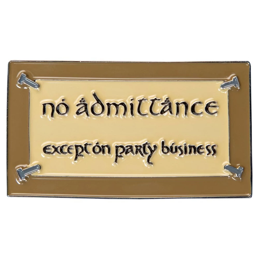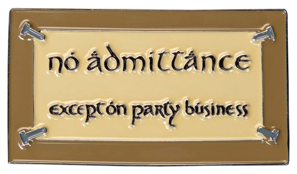 Embrace the spirit of Bilbo's legendary hospitality and embark on your own epic quest with the No Admittance magnet. Add a dash of Middle-earth magic to your surroundings and let the adventure begin. Perfect for adorning refrigerators, filing cabinets, or any other magnetic canvas, let this piece serve as a daily reminder of the wondrous journey that awaits beyond the gate. Whether you're a seasoned collector or a passionate fan of Middle-earth, this magnet is sure to bring a touch of adventure and nostalgia to any magnetic surface. - Inspired by the iconic "No Admittance Except on Party Business" sign from Bilbo's front gate. - Crafted from durable, high-quality materials by the same award-winning artists behind Weta Workshop's renowned collectibles. - Bring a touch of Middle-earth into your home, perfect for fridges, boards, or any metal surface, blending functionality with fantasy. - Official licensed enamel magnet Dimensions: 1.37" x 2.44" x 0.16" (W x H x D) 3.5cm x 6.2cm x 0.4cm