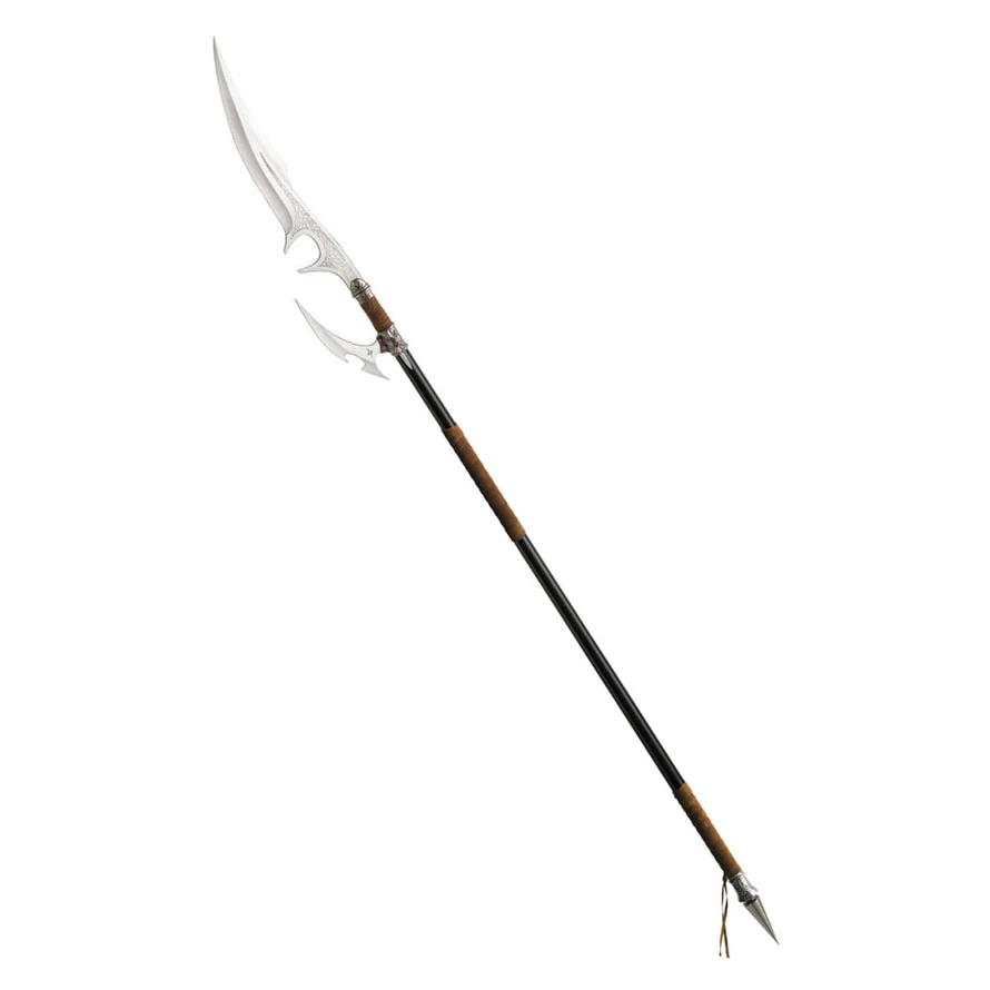 This is the first spear in the series of weapons of Kit Rae ! Ellexdrow is the spear of the 200 year old Mithrodin master Kethol av Torketal who brought the decision in the Red War by throwing his spear into the heart of the one Dark One, sealing his doom. Ellexdrow has 2 AUS-6 stainless steel blades, a blackened stock with leather handles and finely crafted details. Details: - Comes in 2 parts - Total length 180 cm - Blade length of the main blade 47 cm