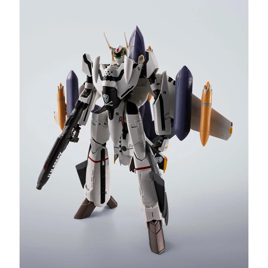 The VF-0S Phoenix, which was released in 2022 as the first installment of HI-METAL R's Macross Zero series, is back in a set equipped with Ghost and various armaments. Enjoy three-stage transformation with or without the Ghost equipment. A dedicated base with a skull mark printed on it is also included. Set Contents: - Main body - Interchangeable wrist parts (4 types each) - Pilot figure - Main wing parts (left and right) - Main wing parts for suspension (left andright) - Small main wing for Battroid - Gunpod - Pitot tubes for fighter (2 pieces, including spare) - Pitot tubes for Battroid, Open air intakes (left and right) - Landing gear (front and rear wheels (left and right)) - Landing boosters (left and right) - Display joint parts set - QF-2200D-B main body - 8-barrel general-purpose micro missile launchers (for wing suspension) (2 pieces) - 8-barrel general-purpose micro missile launchers (for back suspension) (2 pieces) - Medium-range mobile missile pods (2 pieces) - Jig parts for Ghost-equipped Battroid - Ghost-equipped back parts (left and right) - Support rod - Dedicated pedestal set