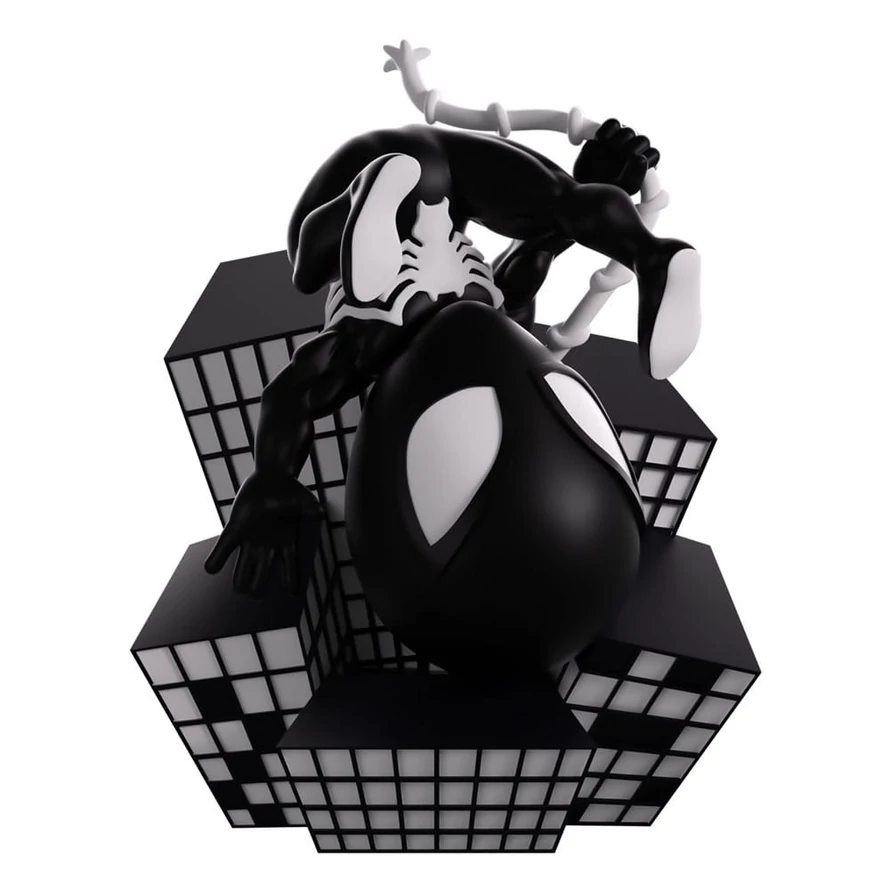 Now this is a spectacular return to Youtooz if we do say so ourselves! That's right, Spider-Man is back with another vinyl figure! At 4.9 inches tall and posed in an acrobatic tumble as he swings through the abstract peaks of black and white skyscrapers, his body curls in the middle as he somersaults backwards and grips the end of a long curling web. With his body covered in a pitch-black suit that blends into the darkness of the night, his eyes, soles of his feet and the spider symbol that wraps around his chest are stark white. The exterior of his packaging sees a hole blown through a light green wall as pillars of smoke rise up from the rubble, while the interior is covered in the light grey panels of Marvel comics. The protective sleeve is then filled with a collection of vertigo-inducing black and white buildings as his figure can be seen through the large clear window at the packaging's front. This collectible ships in a matte, embossed, protective outer sleeve and a custom-sized plastic protector for maximum protection during shipping. About Spider-Man: Spider-Man is a Marvel superhero created by Stan Lee and Steve Ditko. Since its initial comic debut in 1962, the Spider-Man mantle has been taken up by many unlikely heroes-to-be, telling varied and relatable stories that can appeal to anyone no matter who you are!