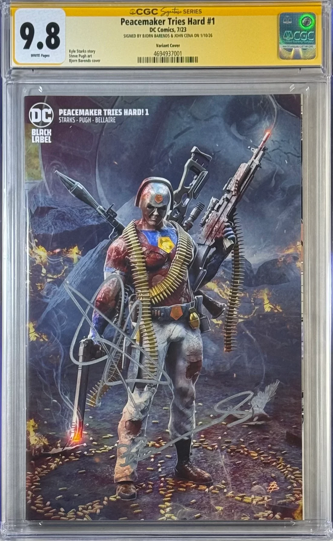 Peacemaker Tries Hard #1 Barends cover CGC 9.8 signed by John Cena & Björn Barends