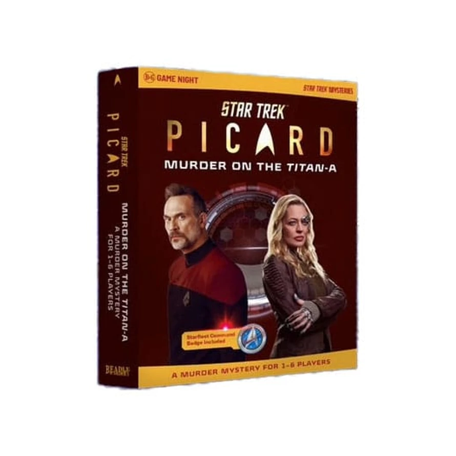Gather around the table with friends for a game night experience you'll talk about for years to come. Work together to uncover the key evidence, use your Starfleet Command badge to report your findings, and avoid war with the Klingons in this murder mystery game. Anyone who is a fan of Star Trek will love the Picard-themed immersive story elements - but no previous knowledge of Star Trek is required to solve this mystery. Study Captain Liam Shaw's and Seven of Nine's evidence and use the augmented reality embedded in your Starfleet Command badge to clear Captain Shaw, eliminate suspects, and avoid the wrath of the Klingon High Council. Murder on the Titan-A is a murder mystery that plays out in three stages and utilizes plenty of written dossiers, witness statements, and reports. In addition, it utilizes a fun augmented reality experience through the Pinfinity App. Once you scan your Starfleet Command badge, you'll be able to use the menu to submit your evidence to Captain Shaw for each stage, obtain hints, and even play fun quotes from Picard through the game. You'll also use the App to scan certain printed documents to pull up electronic reports you'll need to solve the murder. Starfleet Command augmented reality pin included with the game is 2.5" in diameter and has dual rubber clutches to keep it secure to your uniform. Murder on the Titan-A Game Contents: All images and art shown are NOT FINAL and subject to change in the final production versions of the game. - Starfleet Command badge - 2.5" diameter metal pin with dual rubber clutch - launches the augmented reality main menu - Starfleet Command note pad - Ideal for taking notes during the game and long after - U.S.S. Titan-A Map - 8.5" x 11" map shows top and side views of the ship with key locations noted - Game Manual Stage 1 Elements: - Request for Assistance Letter laying out your assignment - Crime Scene Report - U.S.S. Titan-A Security - Autopsy Report - U.S.S. Titan-A Medical - Captain Liam Shaw Incident Statement - U.S.S. Titan-A Security - Dorvak Witness Statement - U.S.S. Titan-A Security - Captain Liam Shaw - Starfleet Personnel File - K'Gurg - Starfleet Intelligence File - Biolab Report - U.S.S. Titan-A Medical - Badge Location Report - U.S.S. Titan-A Security Stage 2 Elements Folder: - Assignment Letter - 5 Starfleet Intelligence and Personnel files - 5 Starfleet Security Incident Statements - 2 U.S.S. Titan-A Reports - 2 U.S.S. Titan-A Encrypted Intercepted Messages - 1 Klingon Proverb Sheet Stage 3 Elements Folder: - Assignment Letter - 3 U.S.S. Titan-A Reports - 1 Encrypted Entry This murder mystery is a single play experience you and your friends won't soon forget. Here's what - some of our playtesters have had to say about Murder on the Titan-A. Number of players: 1+ Age: 14+ Playing time 90 - 180 minutes