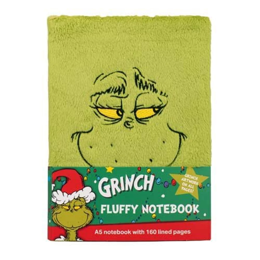 Unleash your creativity with the Grinch Fluffy Notebook, inspired by the iconic character from Dr. Seuss' classic Christmas tale. This playful A5 notebook features 80 plain pages, giving you ample space to sketch, doodle, or write down your thoughts, lists, and ideas. Its compact size makes it the perfect companion for traveling or on-the-go note-taking. Covered in a soft, fluffy Grinch-themed material, this notebook is as fun to hold as it is to use, making it an ideal gift for Grinch fans and holiday enthusiasts alike!
