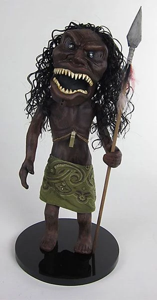 Molded directly from the only surviving original model, this nightmare-inducing Zuni Warrior Fetish Doll stands approx 38 cm tall and comes complete with his trusty spear! This fearsome statue is constructed from heavyweight polystone, and then painstakingly hand painted. The statue also features a cloth skirt, synthetic hair and metal chain. Make sure his chain is securely attached! Limited to 500 pieces worldwide.