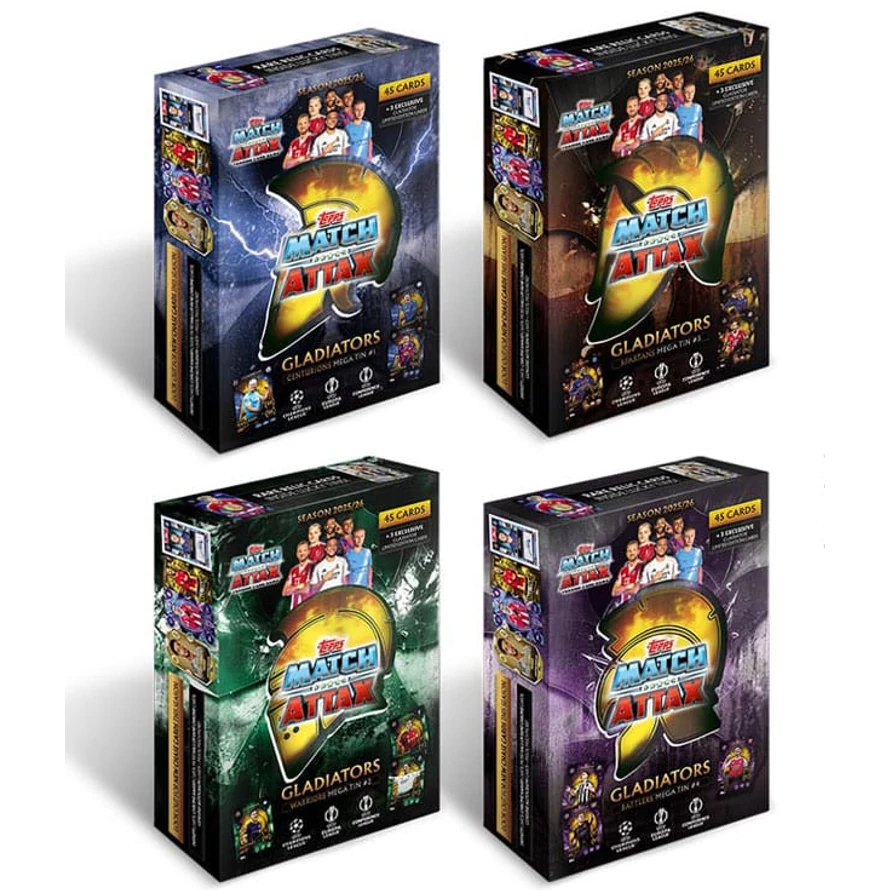 48 cards including 3 exclusive Gladiators limited edition cards. 4 different tin versions. Delivery is random.