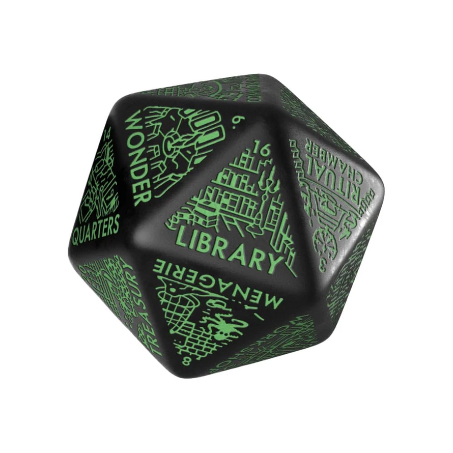 No dungeon ready in your mind? Roll and explore! The Dungeon Generator Die is a jumbo-sized D20 designed by Viridian Dice - a perfect tool for Game Masters who love spontaneous worldbuilding. Each roll determines a unique chamber, adding structure and surprise to your underground adventures. Big Idea - Jumbo K20 engraved with twenty room and location types that shape the structure of any dungeon and spark new ideas. Dungeon for the Win - Roll to discover: Prison, Crypt, Ritual Chamber, Ruins, Natural Feature, Wonder, Storage, Menagerie, Common Room, Workshop, Forge, Lab, Armory, Quarters, Dining Room, Library, Temple, Great Hall, Throne Room, or Treasury. Contrasting Colors - Perfectly readable and visually striking colors, Black & Green. Easy to Read - Clear, deeply engraved text ensures readability in dim torchlight or across the table. Terrific Co-op - The Dungeon Generator Die is produced by Q WORKSHOP in Poland, EU, created by Viridian Dice, and now available in broader distribution channels.