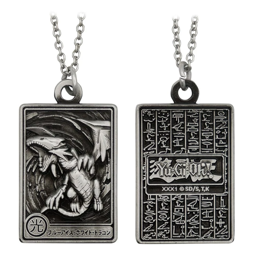 Keep this formidable ally close to your chest with this limited edition Blue-Eyes White Dragon Necklace! Considered to be one of the most powerful monsters in the Yu-Gi-Oh! universe, you can now unify your love for this fearsome warrior with our officially licensed pendant necklace. Finished with an antique nickel and heavily embossed design, the pendant measures 22 x 32mm and is limited to 5,000 worldwide. Each necklace is individually numbered and is complete with a smart presentation box.
